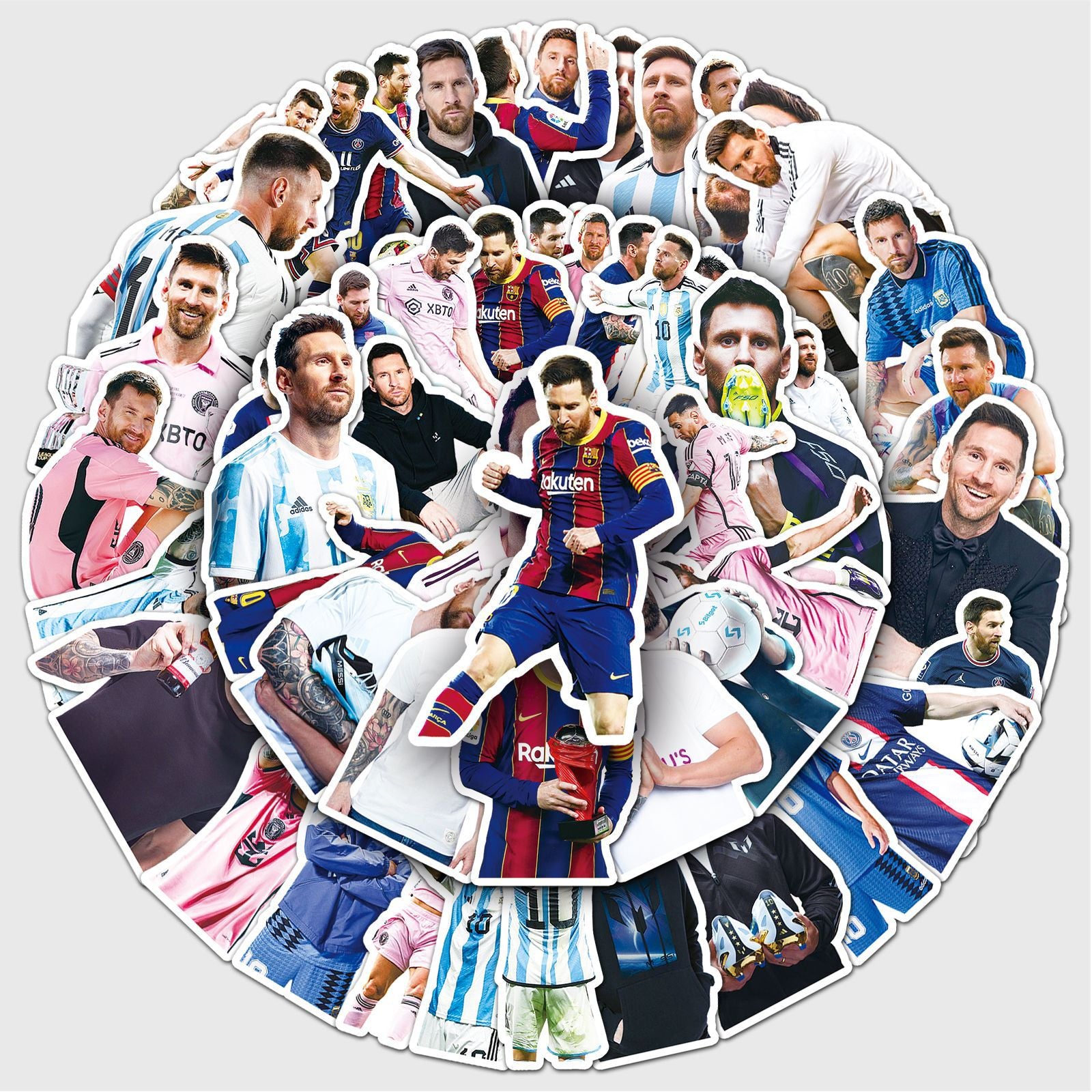 50 high‑quality waterproof Messi stickers perfect for laptops, bottles, notebooks, guitars, luggage and more. Durable PVC material, vibrant colours, and non‑repeat designs for football fans.