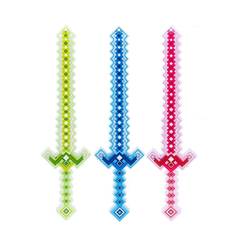 Light‑up LED sword inspired by Minecraft with sound effects and color modes.