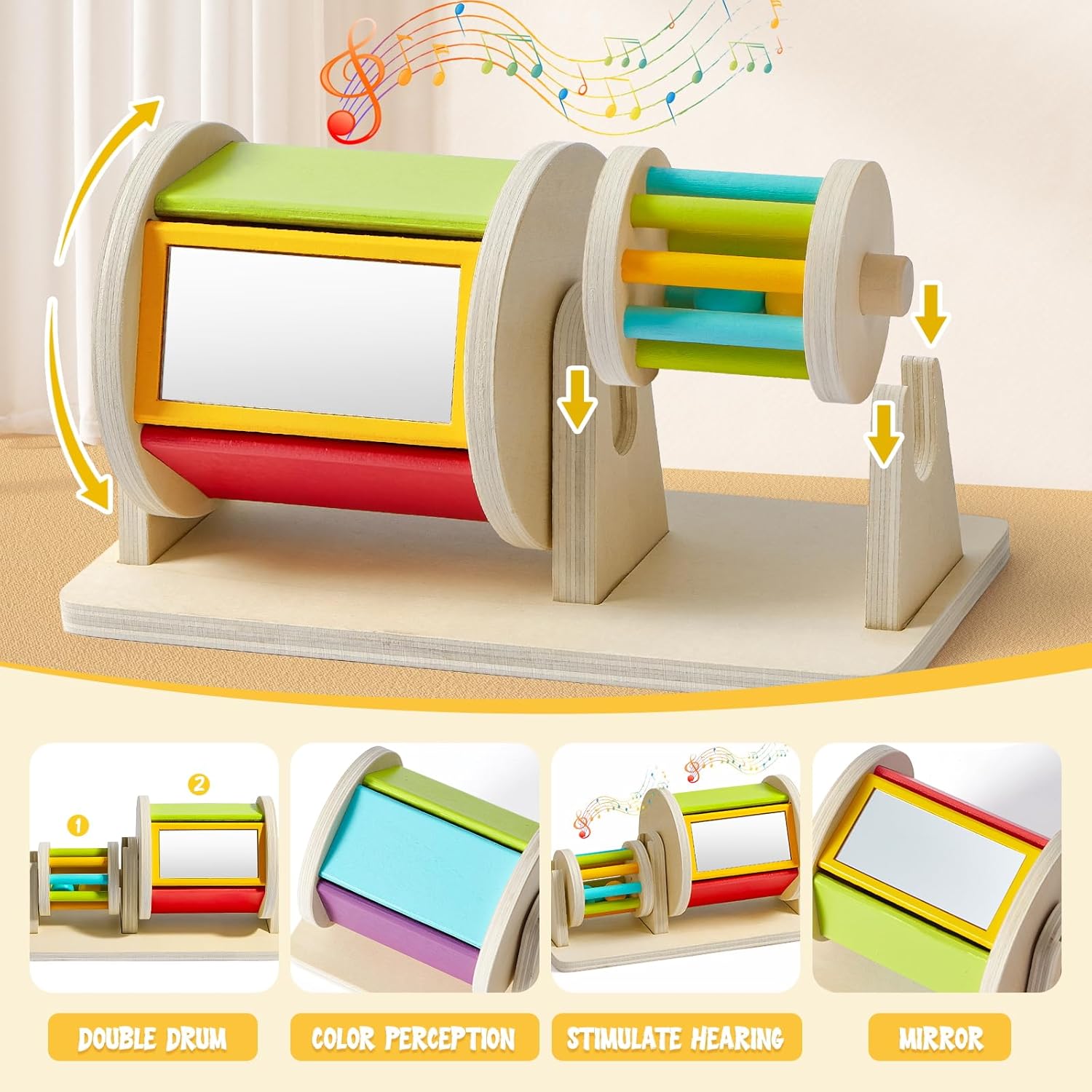 Montessori Rolling Drum Toy – Sensory Activity for Babies (Wooden)