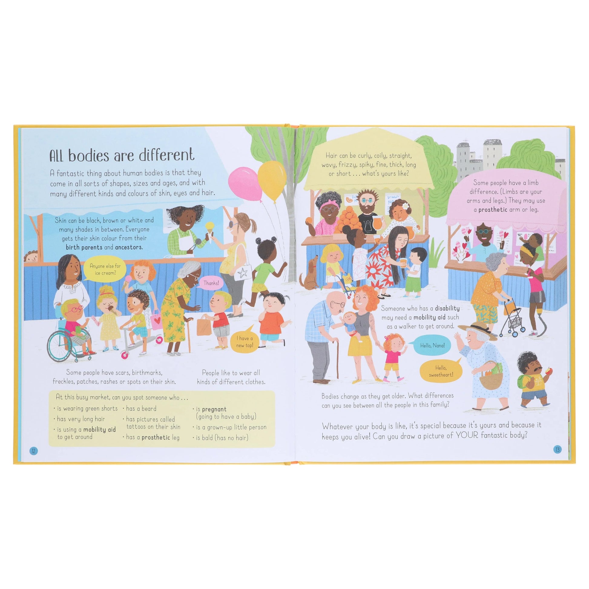Young children will enjoy this lively look at all the incredible things the human body can do, what it needs to stay healthy and how to look after it. The wide-ranging topics such as senses, germs, feelings, exercise, food, sleep and toothcare are all brought to life by the delightful illustrations. There's a celebration of different body shapes and sizes and information about why bodies look different including skin colour, disability, hair type and age. The book also explores how bodies grow and change as children get older.